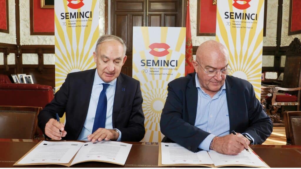 El alcalde de Valladolid, Jesús Julio Carnero y el rector de la Universidad de Valladolid (UVa), Antonio Largo Cabrerizo, han firmado hoy el acuerdo de colaboración para promover la difusión entre la comunidad académica de las diferentes actividades de la 70ª edición de la Semana Internacional de Cine de Valladolid (Seminci), que se celebrará del 24 de octubre al 1 de noviembre, así como la participación de la institución educativa en diferentes iniciativas.